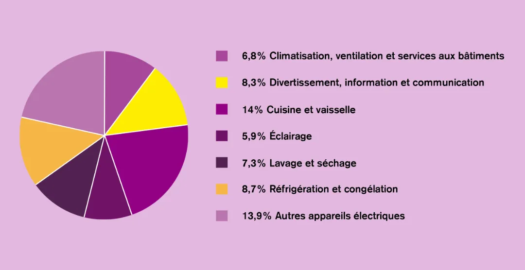 (Source: OFEN, Analyse de la consommation d’énergie en Suisse par genre d’utilisation en 2019, sans le chauffage et l’eau chaude)